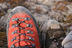 •1 Paar solide feste, eingetragene Wanderstiefel (steigeisenfest, bitte keine alten, ausgelatschten Schuhe, die gehen kaputt)